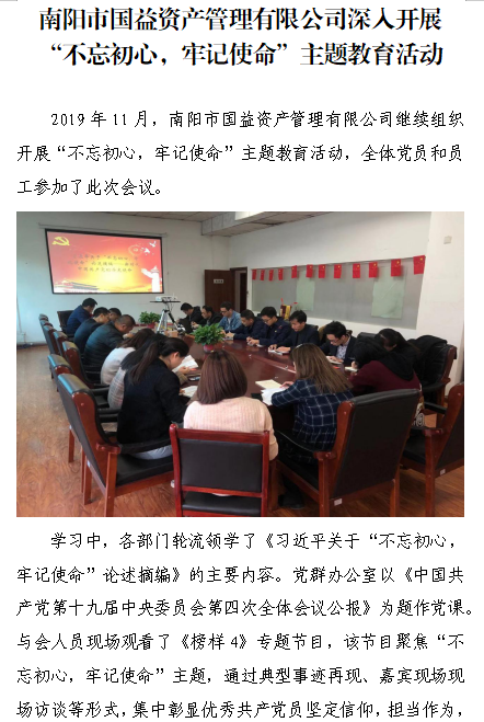 南陽市國(guó)益資產(chǎn)管理有限公司深入開展“不忘初心,牢記使命”主題教育活動(dòng)